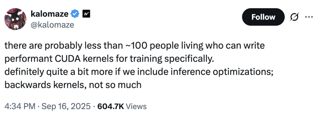 全世界能写出高性能训练用CUDA内核的人,活着的不超过100个。