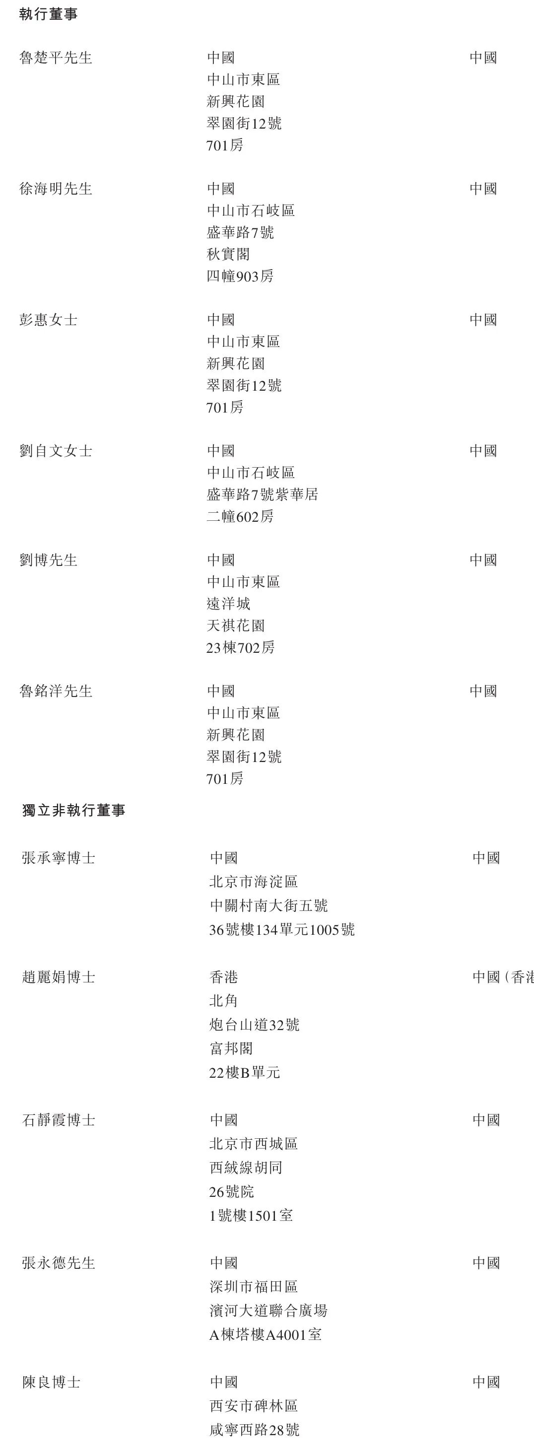 大洋电机执行董事分别为鲁楚平、徐海明、彭惠女士、刘自文女士、刘博、鲁铭洋,独立非执行董事分别为张承宁博士、赵丽娟博士、石静霞博士、张永德、陈良博士。