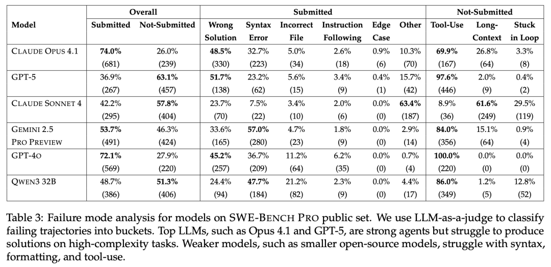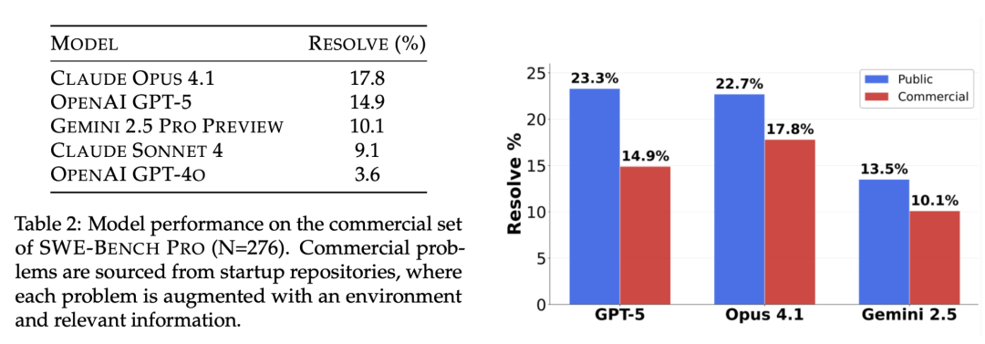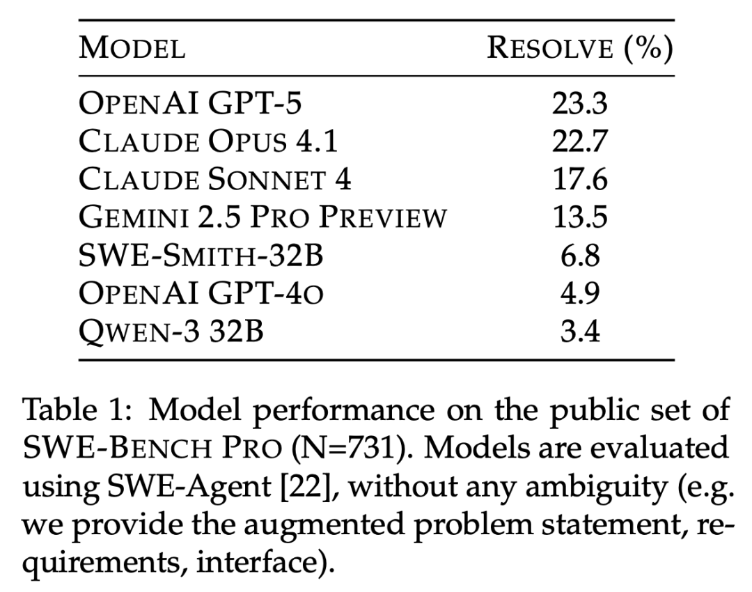 不同顶尖模型,在SWE-Bench Pro上的表现如下表1所示。