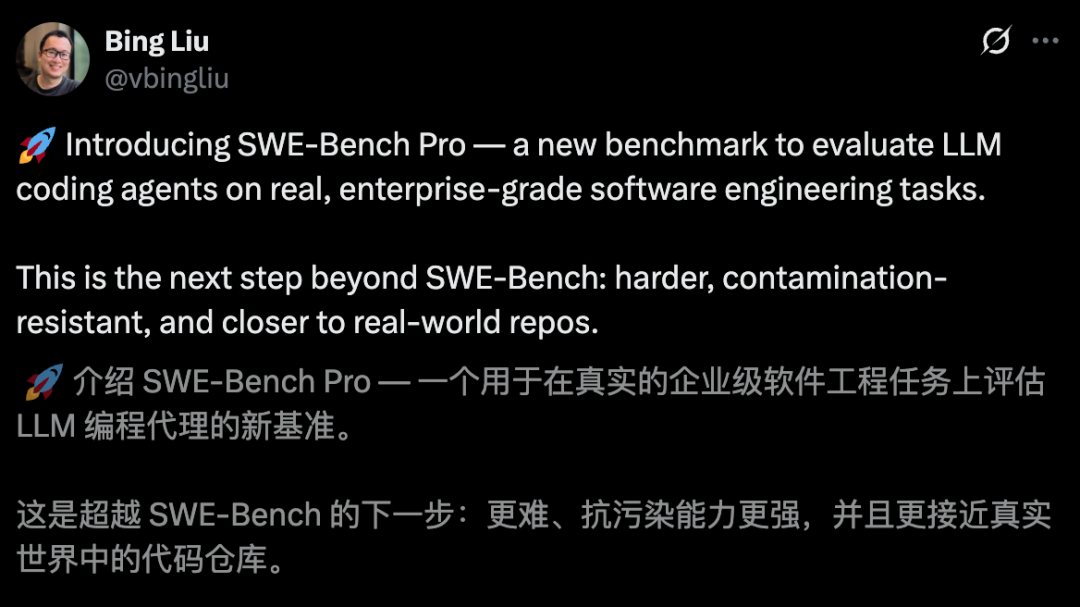 总言之,SWE-Bench Pro是一个全新抗污染、工业真实的基准,能够成为未来LLM编码能力一大标尺。