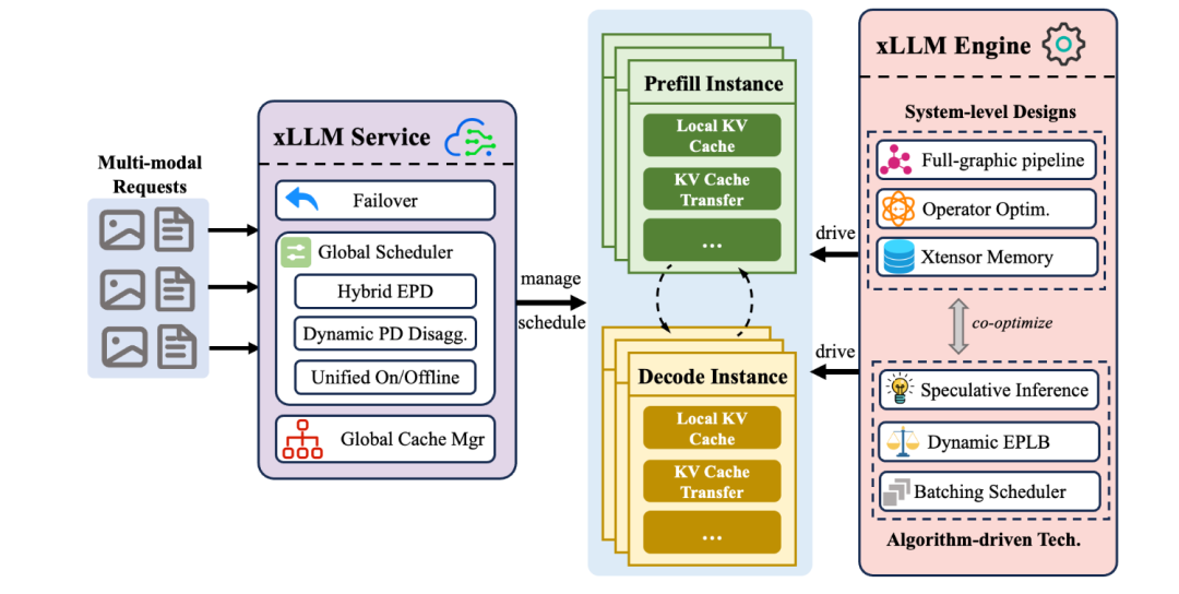 服务层(主要负责处理各种请求):包括在离线请求弹性调度、动态PD分离、EPD混合机制及高可用容错设计;