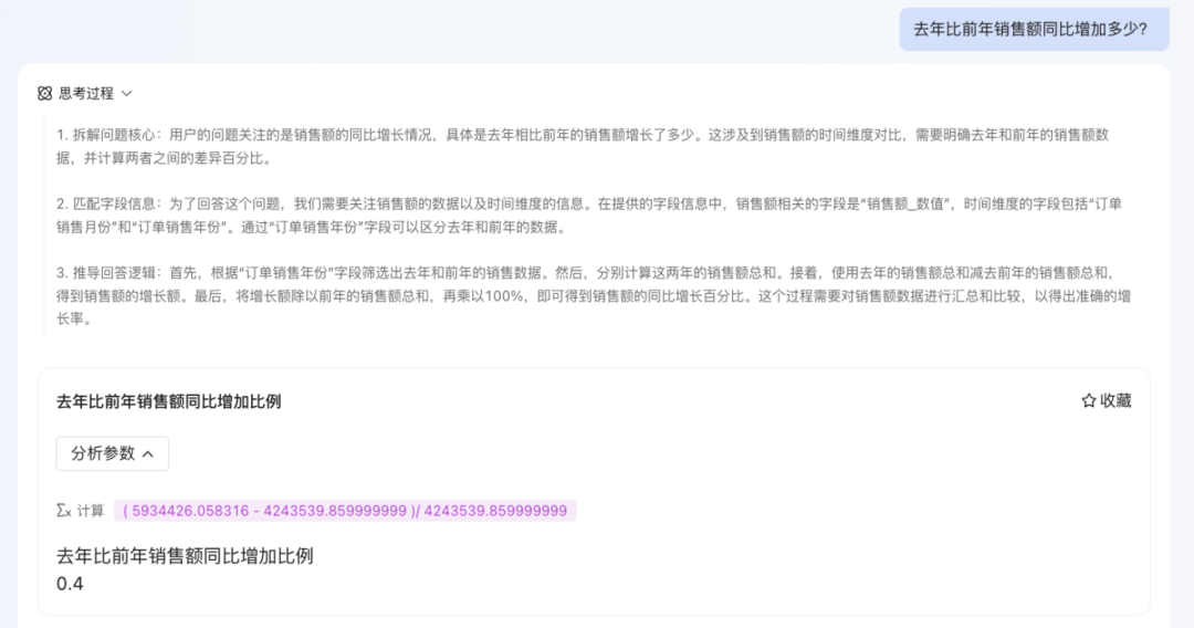 业务人员可以直接用自然语言提问“去年比前年销售额同比增加多少?”“2024年上海的销售额变化趋势如何?”,系统便能自动查询数据库、定位问题并生成分析洞察。