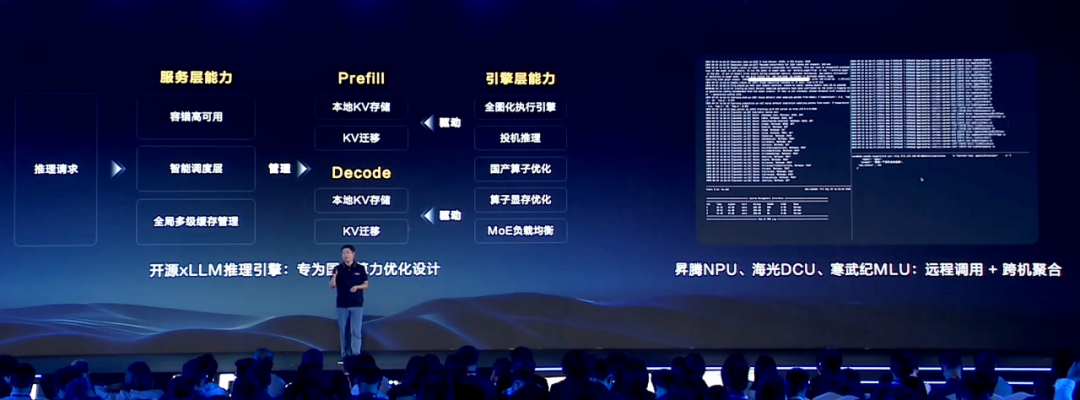 引擎层(主要负责实际运算):包括多流并行计算、图融合优化、投机推理、动态负载均衡及全局KV缓存管理。