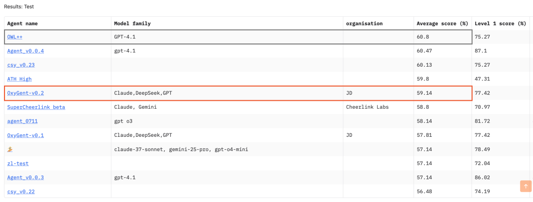 在GAIA评测中,OxyGent拿下59.14分,紧追开源标杆OWL(60.8分)。
