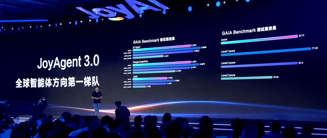 升级后的JoyAgent,在全球权威智能体评测榜单GAIA,Validation集准确率77%,Test集准确率超67%,相较于此前成绩实现稳步提升。