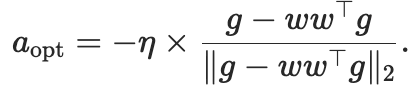 用g表示梯度, w表示超球面上的当前点, a表示更新方向, η表示学习率,我们需要解决的问题是: