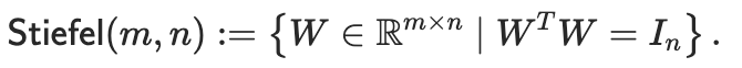 这种矩阵流形在数学上被称为Stiefel流形,在高矩阵( m≥n)的假设下,它可以等价地定义为以下集合: