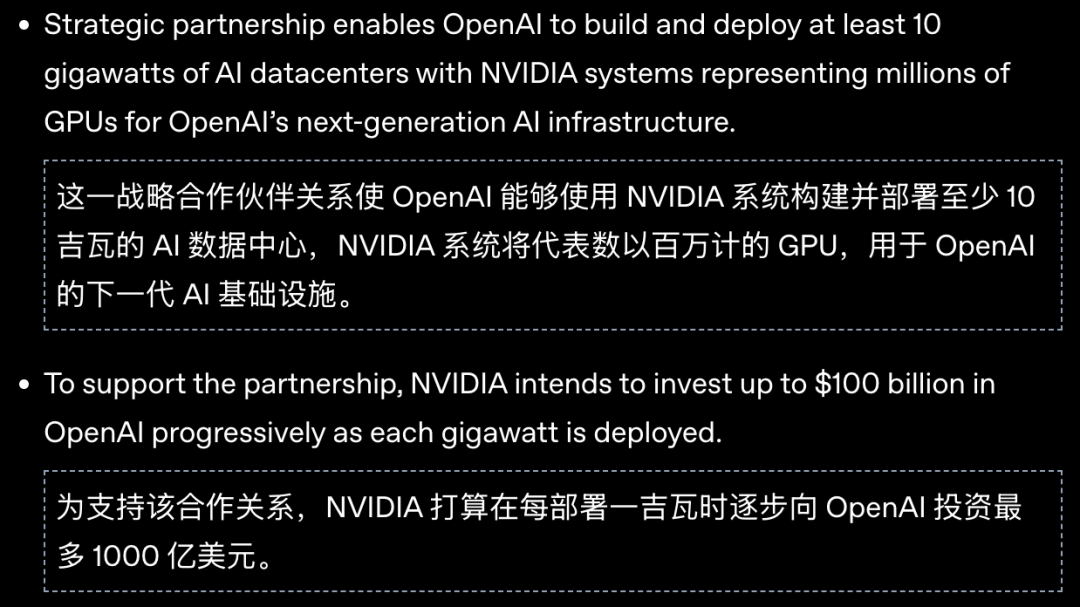 9月22日,奥特曼就官宣了英伟达的合作,计划建设10GW的英伟达GPU系统。