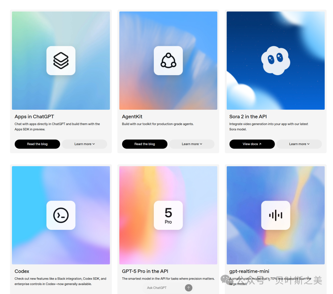 API 层面的更新更是诚意满满:GPT-5 Pro 开放 400k 上下文 API,适配金融、医疗等高精需求;Sora 2 与 Sora 2 Pro 双版本 API 上线,15 秒视频最低 1.5 美元即可生成;Real-Time Mini 语音模型降价 70%,推动语音交互普及。当技术的门槛持续降低,创意与应用的爆发,或许才是 OpenAI 埋下的最大伏笔。以下,Enjoy: