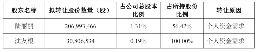 沈友根套现34.4亿元。沈友根股权转让的原因和这次陆丽丽减持的原因一样,也是个人资金需求。