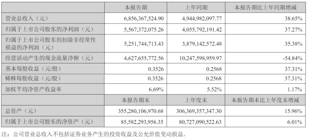 东方财富2025年上半年净利55.67亿,较上年同期的40.56亿元增长37.27%;扣非后净利52.52亿元,较上年同期的38.79亿元增长35.38%。