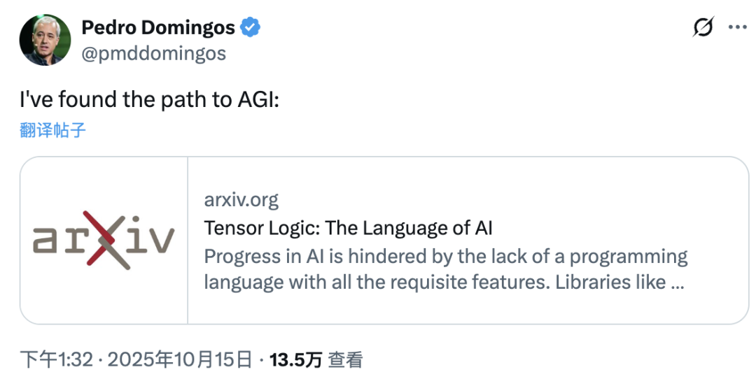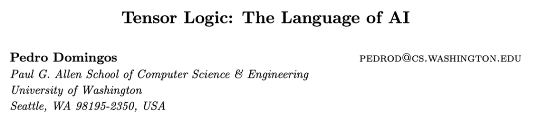 Domingos提出了一种全新的AI编程语言框架,名为Tensor Logic,作者认为它有潜力成为整个人工智能领域的“母语”。