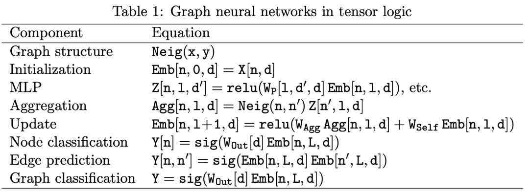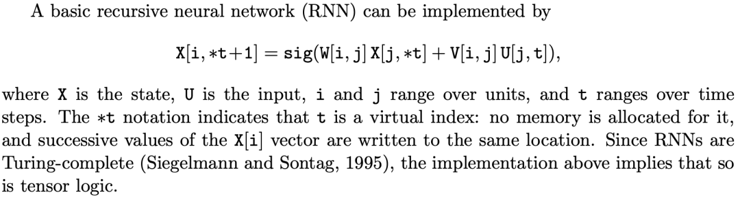 这样做的原因是Domingos认为逻辑规则与张量运算中的爱因斯坦求和(Einstein summation)在结构上是等价的,逻辑程序中通过连接条件和投影来进行推理,而这些都可以用张量乘法与求和表达出来。