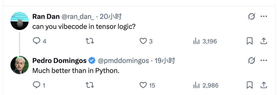 Domingos对自己的成果非常自信,有网友询问能不能用这套系统来做Vibe Coding,而Domingos的回答是,“比Python强太多”。