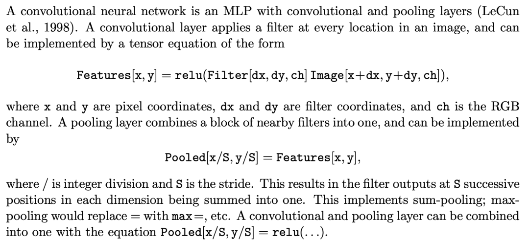 无论是多层感知机的线性变换与激活函数、RNN的时序递归、CNN的卷积操作,还是Transformer中的注意力机制和归一化操作,都可以用一组张量方程串联起来表达。