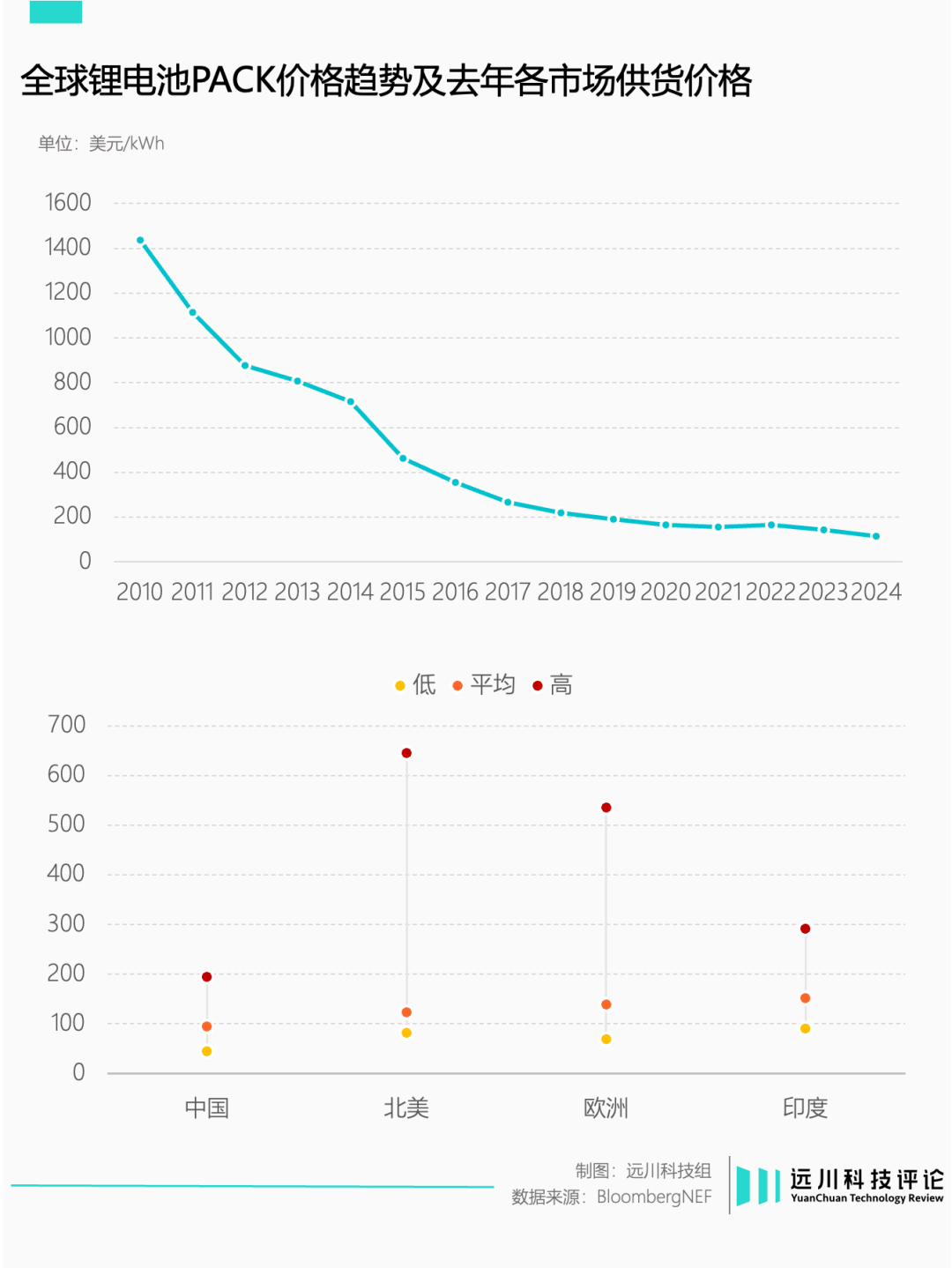 按照彭博新能源财经的口径,去年全球锂电池PACK均价降至115美元/kWh,但分布极不平均。