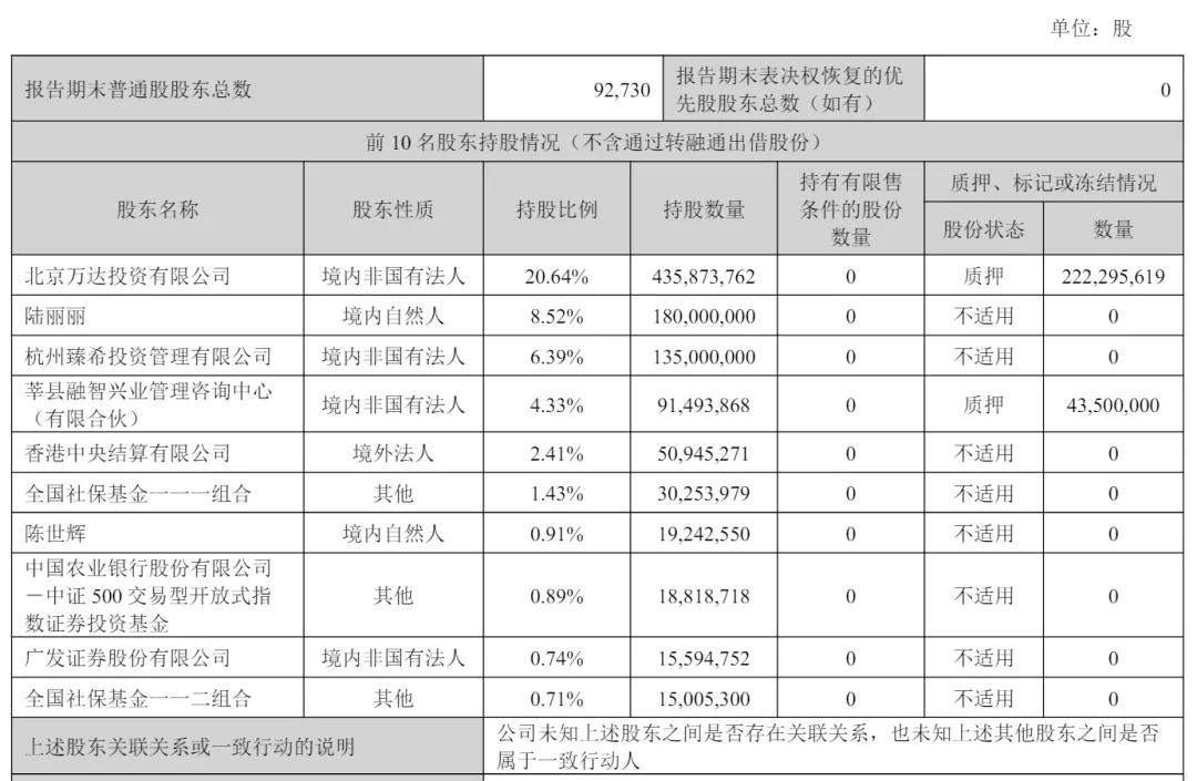 截至2025年6月30日,万达电影股权结构