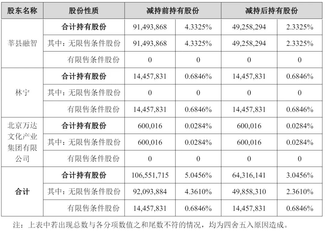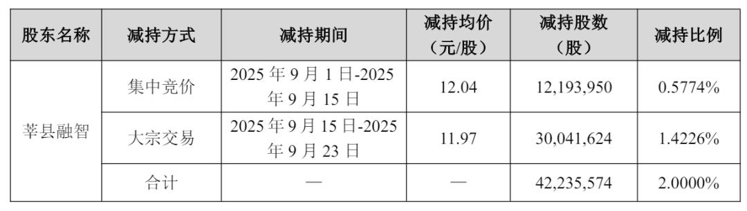 莘县融智是万达集团旗下基金,其2025年9月1日到9月15日通过集中竞价减持0.5774%的万达电影股权,套现1.47亿元;2025年9月15日到9月23日通过大宗交易的方式减持1.4226%的万达电影股权,套现3.59亿元。