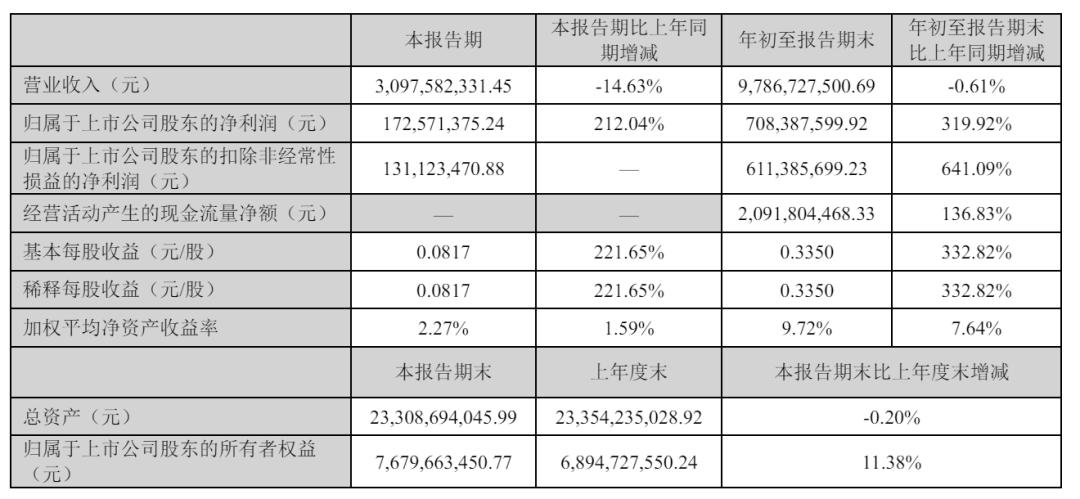 此外,公司持续加强成本管控,优化财务结构,前三季度销售费用、管理费用和财务费用均同比下降。