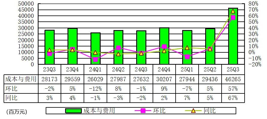 百度2025年第三季度销售及管理费用为66亿元(9.24亿美元),同比增加12%,主要是由于预期信用损失及渠道支出增加。