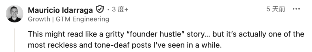 这乍看像是一个充满奋斗精神的「创业故事」……但实际上,这是我近期见过的最鲁莽、最不顾及他人感受的帖子之一。