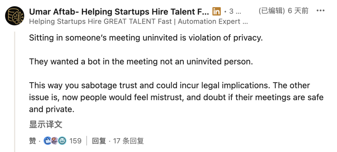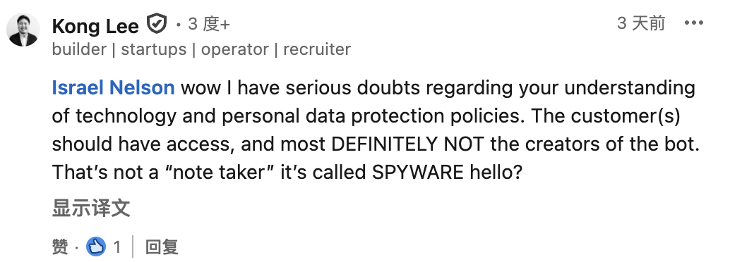 这种行为会破坏信任,人们以后都会怀疑Fireflies的会议是否安全。