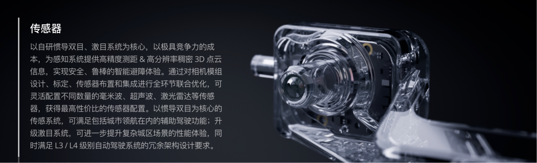 首先是极致硬件性能压榨能力,只用行业普遍一半,甚至是单个传感器的成本就能实现同等能力,对应着高阶方案下放普及。
