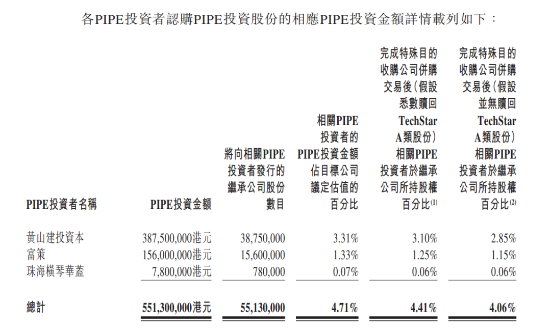 在图达通的这次上市计划中,图达通将和TechStar、三名PIPE投资者共同签署PIPE投资协议。