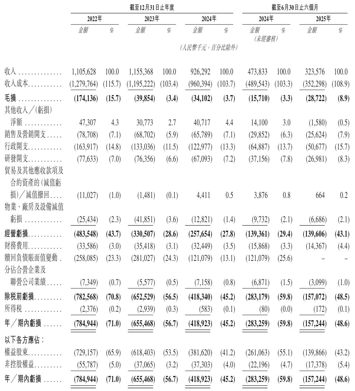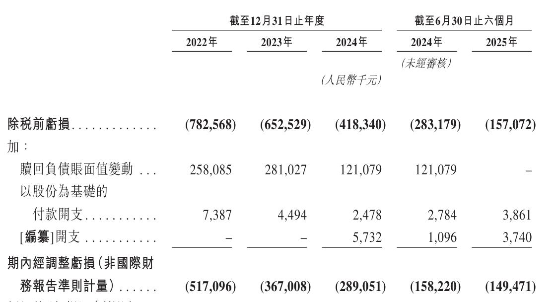 奥动2022年、2023年、2024年经调整净亏分别为5.17亿、3.67亿元、2.89亿元;2025年上半年经调整净亏损为1.49亿元。