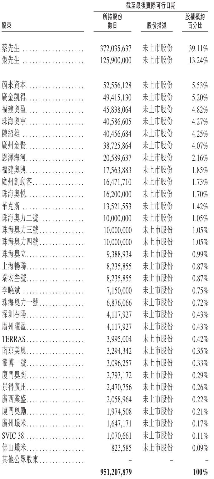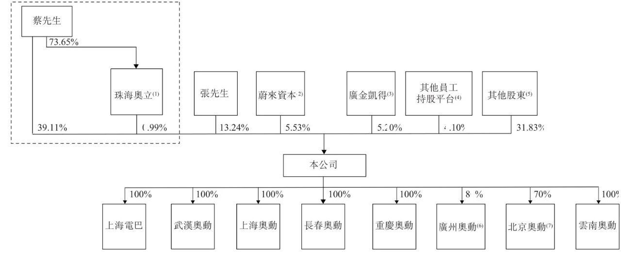 IPO前,奥动由蔡东青直接拥有约39.11%及由珠海奥立直接拥有约0.99%,珠海奥立为奥动的员工持股平台之一,由蔡东青作为唯一普通合伙人控制。