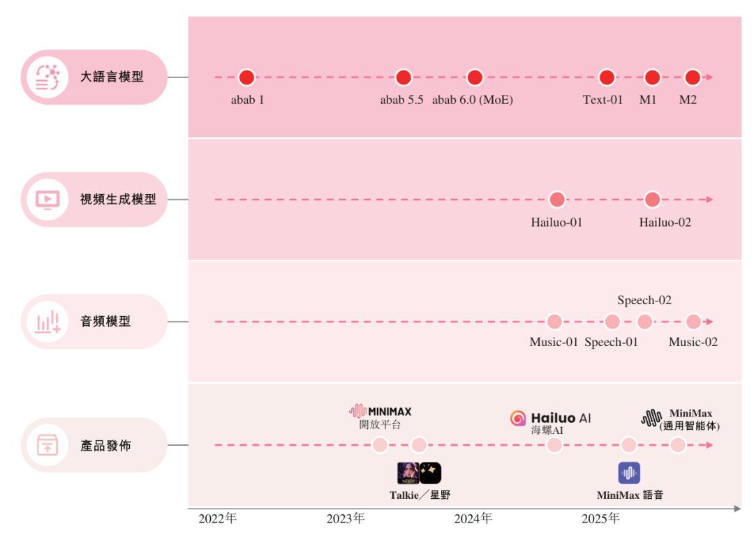 MiniMax专注全模态模型自研,技术迭代密集。语音领域,于2023年推出基于Transformer架构的语音大模型Speech 01,随后在2024年将综合性能提升至全球 第一的Speech 02,累计已生成超过2.2亿小时的语音。