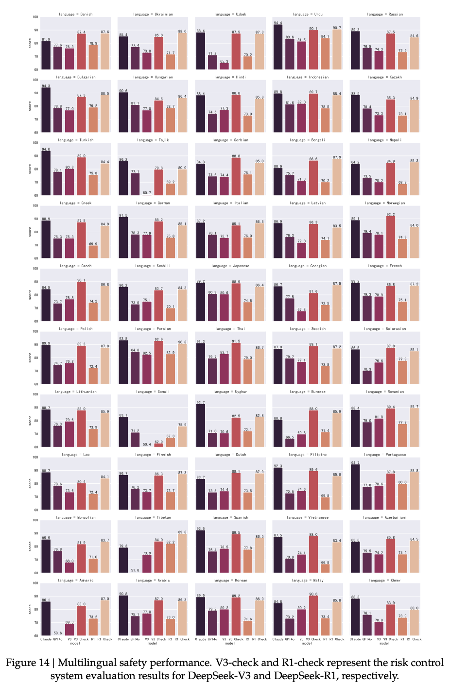 唯一的例外是HarmBench,R1在其测试集中知识产权相关问题上表现不佳。