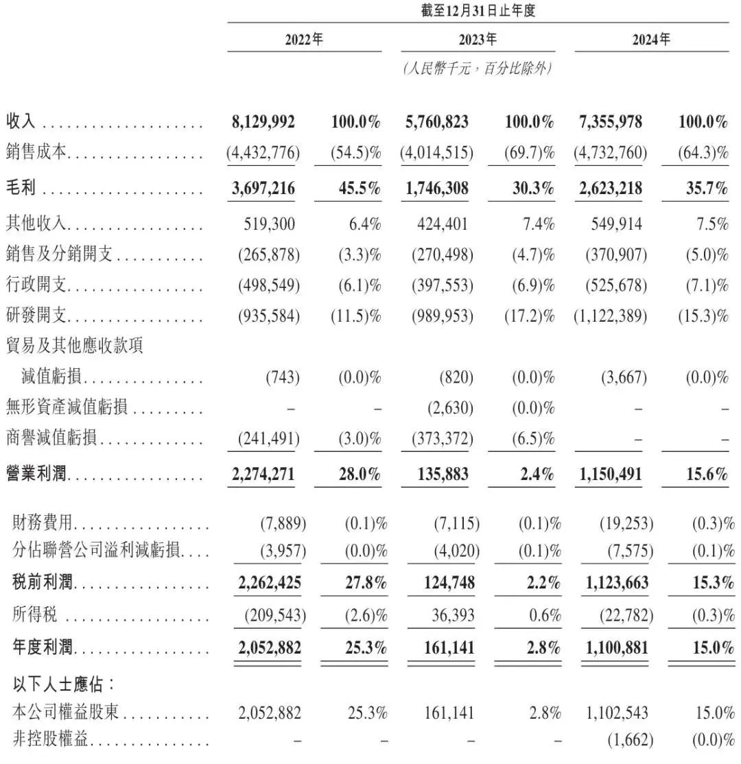 兆易创新2022年、2023年、2024年运营利润分别为22.74亿、1.36亿、11.5亿;经营利润率分别为28%、2.4%、15.6%;年内利润分别为20.53亿、1.61亿、11亿;年内利润率分别为25.3%、2.8%、15%。
