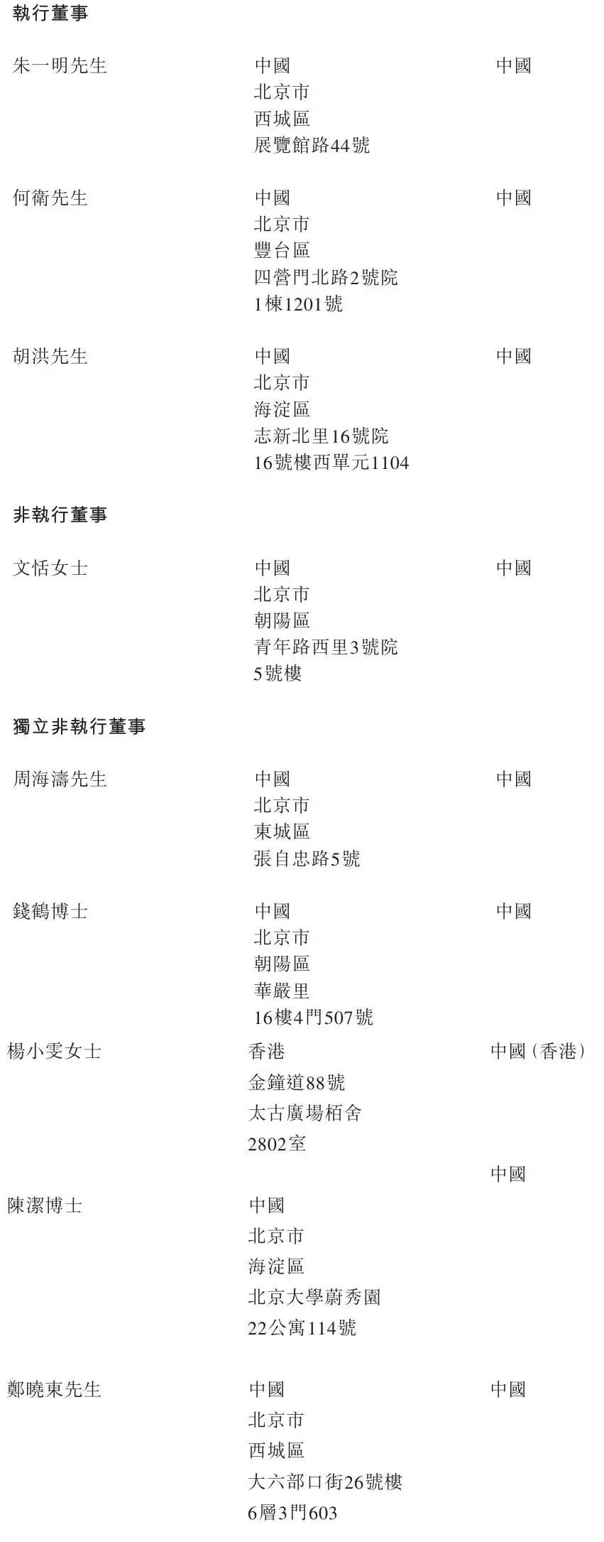 兆易创新执行董事分别为朱一明、何卫、胡洪;非执行董事为文恬女士,独立非执行董事分别为周海涛、钱鹤博士、杨小雯女士、陈洁博士、郑晓东。