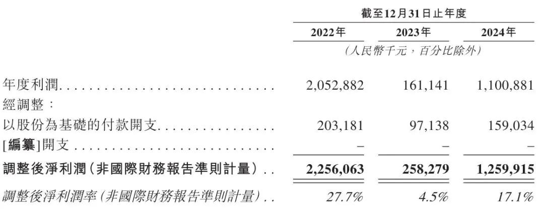 兆易创新2022年、2023年、2024年经调整净利分别为22.56亿元、2.58亿元、12.6亿元。