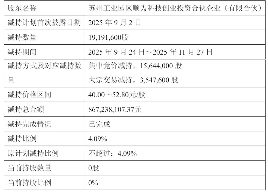 2025年11月28日,龙旗科技发布公告称,截至2025年11月27日,苏州顺为通过集中竞价交易及大宗交易方式减持公司股份19,191,600股,占公司总股本的4.09%。