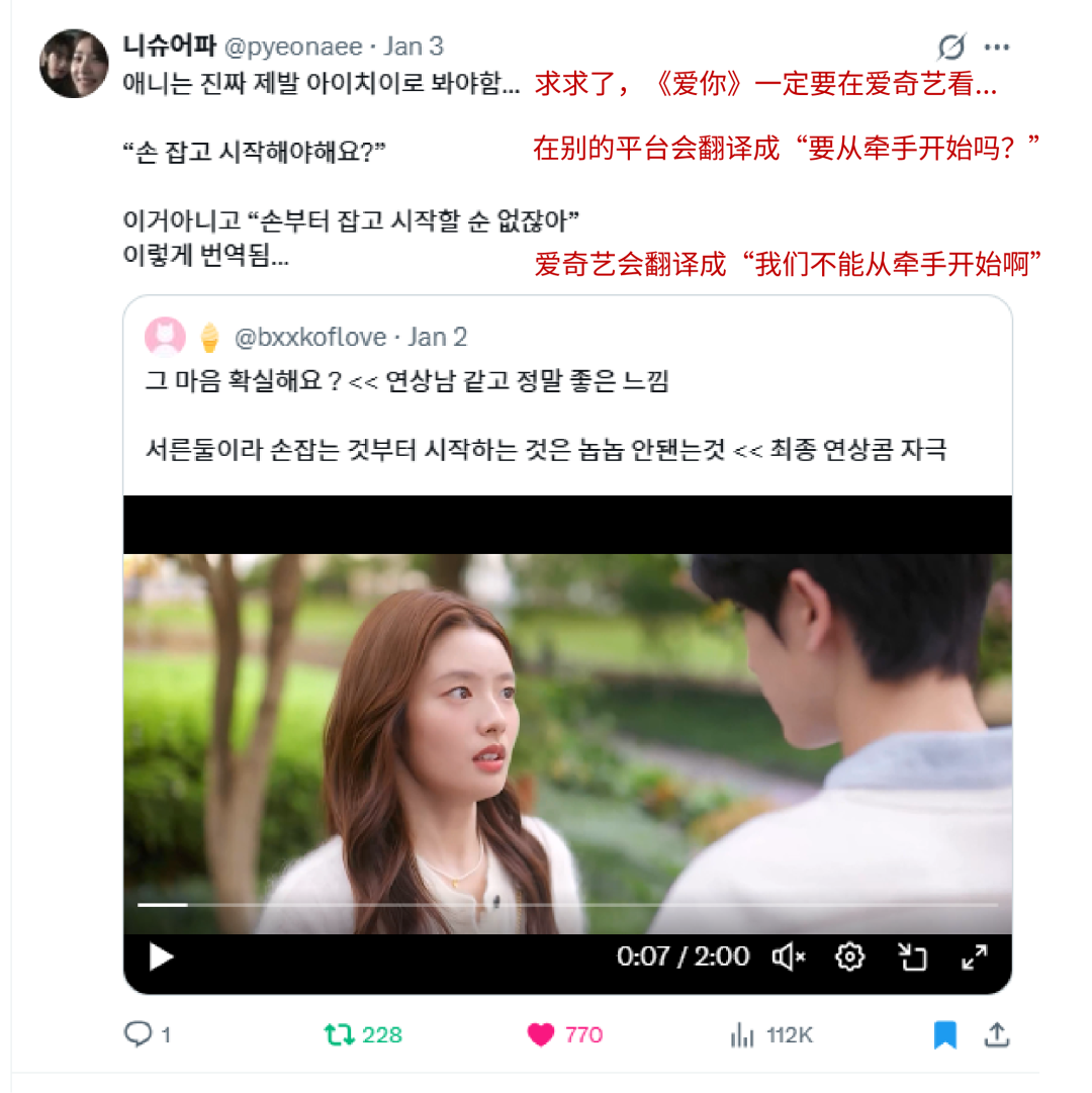 在泰国,热播剧集前十名有八部为泰语配音版华语剧,微剧、动漫热播榜排名前列的作品也多为泰配版;在韩国,有不少用户直言想真正感受《爱你》的台词,就得选爱奇艺国际版。