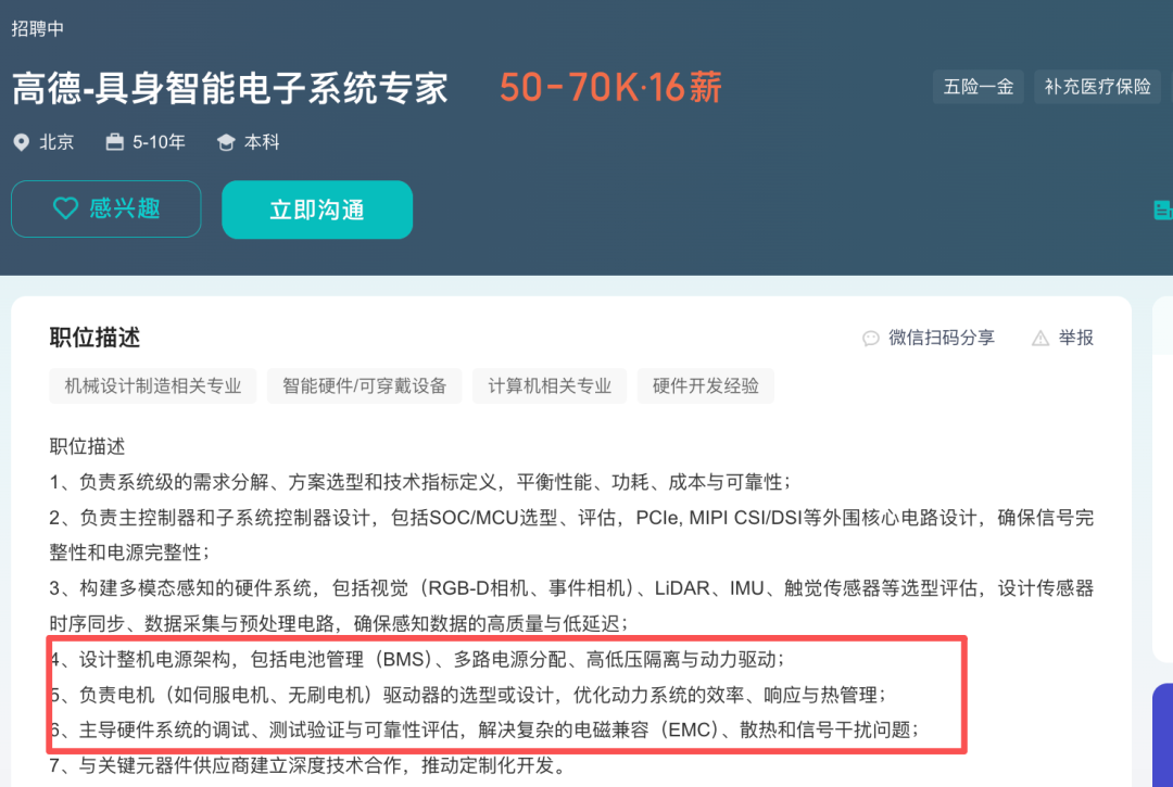 实际上,高德去年就开始为进军具身智能储备人才了。2025年11月,招聘平台上显示,高德正在招聘多个具身智能岗位,包括具身智能业务负责人、具身算法运控工程师、具身硬件算法专家、具身算法工程师和具身智能电子系统专家等,有些岗位目前已经关闭了,比如机器人控制专家,也有的岗位仍在招人,比如电子系统专家。