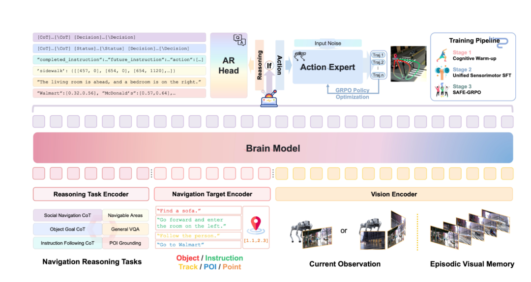 高德认为,过去具身智能领域的导航成果都比较“碎片化”,喜欢针对不同任务设计不同架构,比如说导航到某个点是一个架构,指定物体目标导航过去又是另一个架构。