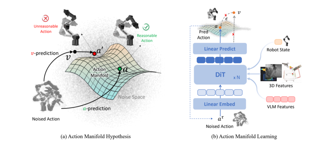 动作专家采用DiT作为动作生成器,核心机制是动作流形学习(Action Manifold Learning, AML),这是对传统方式的创新。