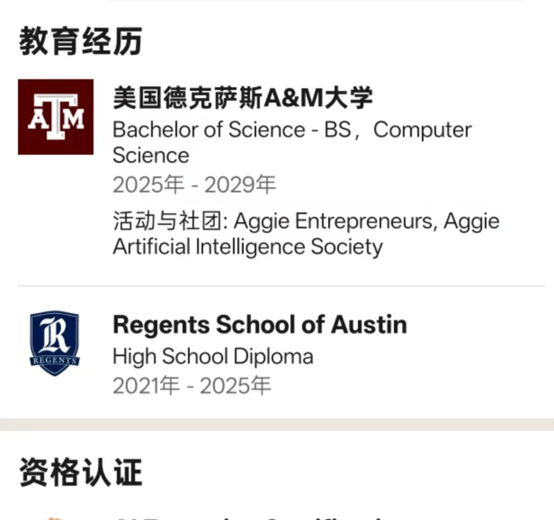 麦克坎纳是一名自动驾驶爱好者,去年还在上高中,目前在得克萨斯农工大学计算机专业学习。公开资料显示,得克萨斯农工大学在全美公立高校中排名第六,距离麦克坎纳的家乡奥斯汀也就2个小时的车程。