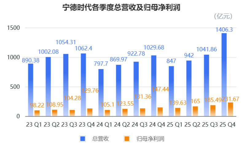 2025年,“宁王”的营收和净利润双双创下历史新高,净利润的增速已经达到营收增速的2.5倍。