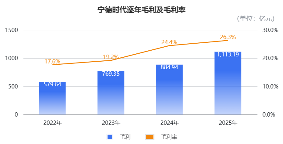 2025年,宁德时代的毛利率和净利率分别达到26.3%和18.1%,均为近五年最高水平。