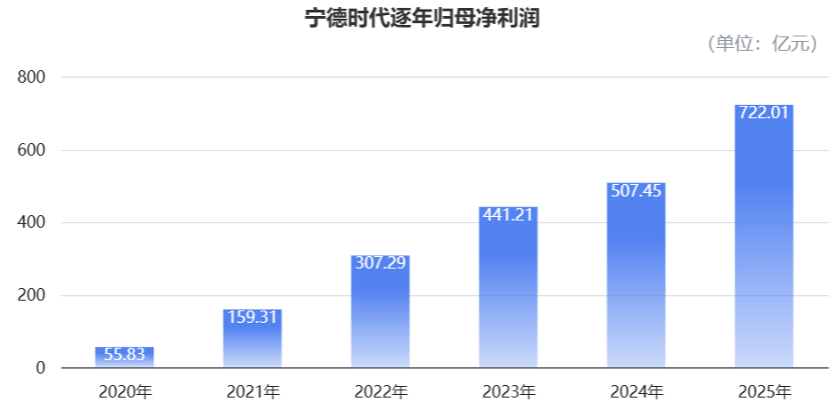 2025年,宁德时代营收重回增长轨道并突破历史峰值;归母净利润达到722亿元,同样创下新高,且净利增速较营收增速更为明显。