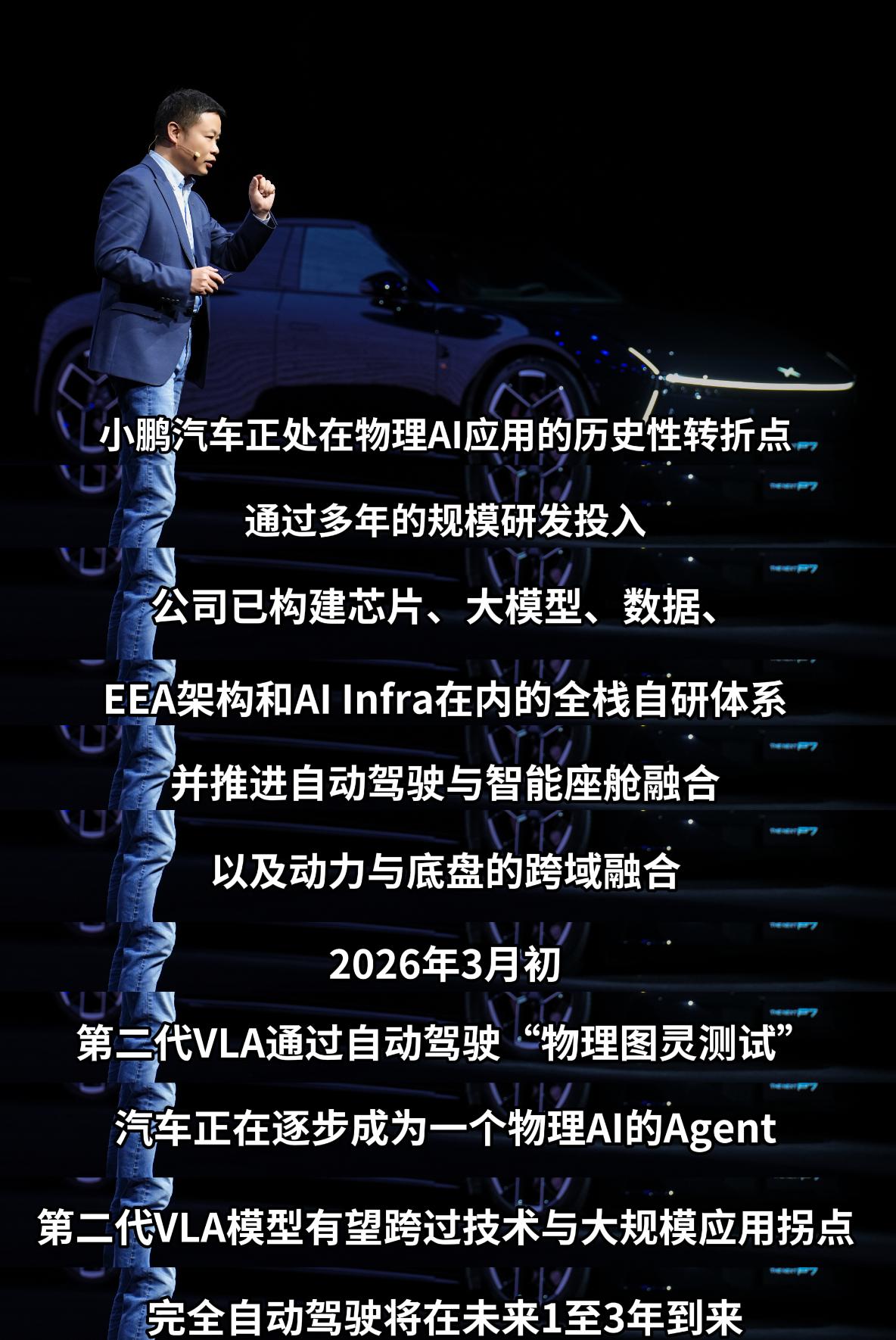 “按照当前进展,完全自动驾驶有望在未来1至3年到来,并成为日常出行方式。搭载第二代VLA的GX Robotaxi车型已获得广州智能网联汽车道路测试许可,正在进行常态化L4公开道路测试,计划下半年开启载客示范运营,跑通技术、客户与商业的验证。”