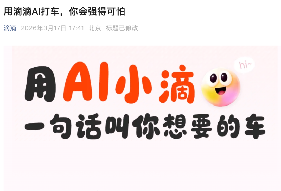 没有大模型、Agent、龙虾这样的炫酷概念,AI小滴看着很朴素,其实很性感:让出行服务去适配人,而不是让人去适配系统。