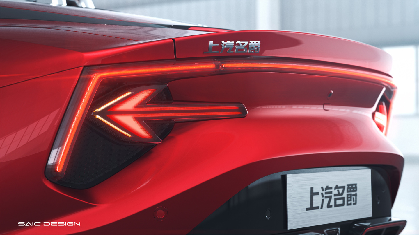 名爵 Cyberster 采用了两门两座的车身设计,并搭载了软顶敞篷机构,且顶篷提供黑色和红色两种选择。该车还沿用了概念车上的部分设计元素,如箭头形状的尾灯和后包围扩散器造型等。值得一提的是,该车还采用了剪刀门。