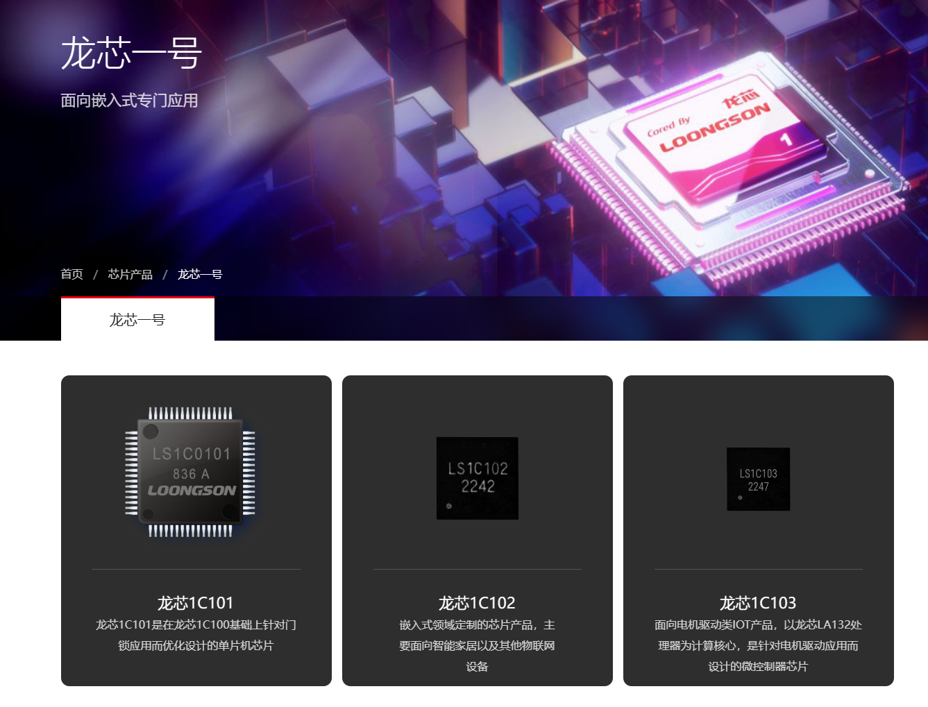 IT之家查询龙芯中科官网获悉,龙芯一号是龙芯中科面向嵌入式专门应用开发的产品,目前官网列出了三款产品: