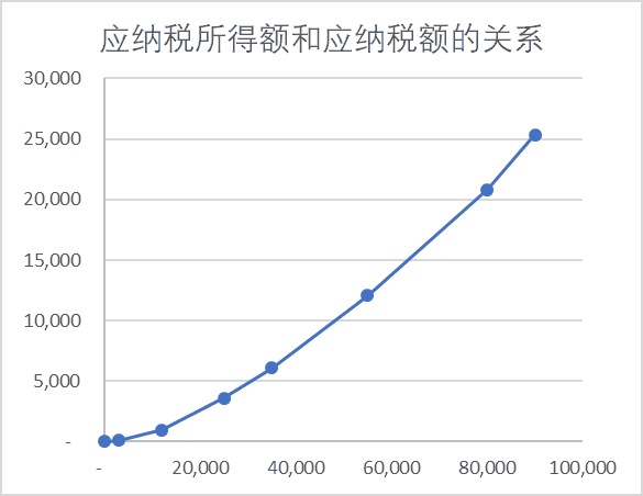 之所以最终个税必定是各级数计算结果的最大值,是因为应纳税额和应纳税所得额所构成的分段函数是一个导数递增的递增函数。