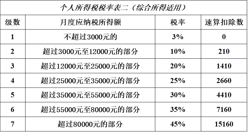 个人所得税作为采用超额累计税率的典型,其税率从 3%-45% 不等,具体如下: